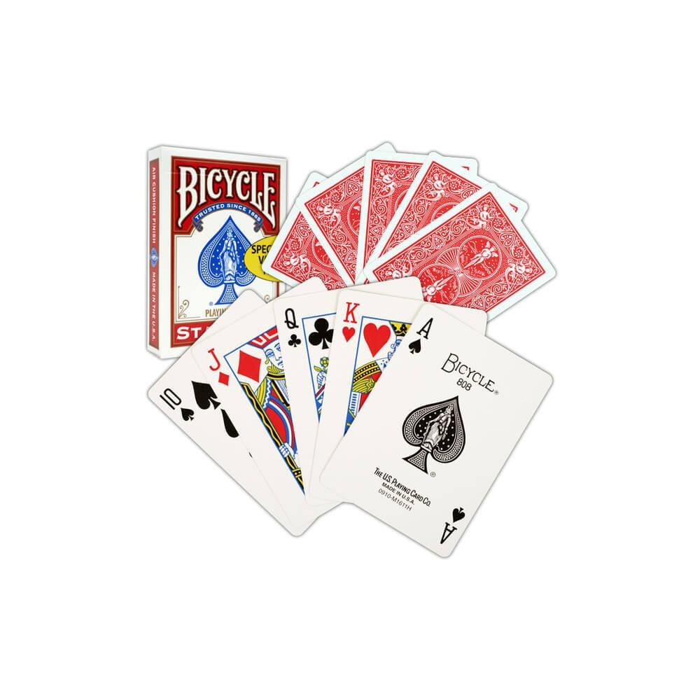A Bicycle Rider Back minőségi, papír póker kártya dupla csomagja az 1885 óta legkedveltebb választás a játékosok körében, ezzel kiérdemelve a "minden idők legjobb kártyája" címet. Védjegyévé vált a Rider back hátlap, amin a Bicycle póker kártyák jellegzetes, könnyen felismerhető szimbóluma látható: a bicikliző angyalka.