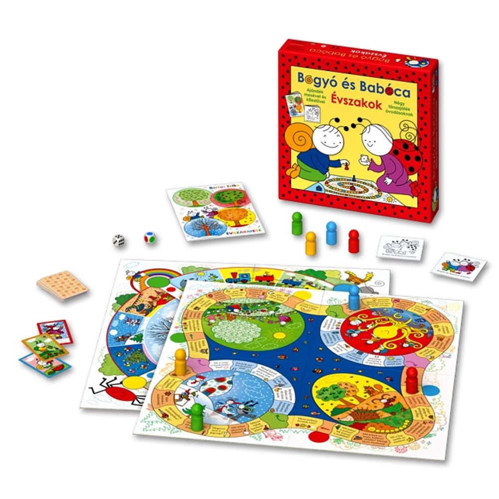 A Bogyó és Babóca mesék szerelmeseinek készült az Évszakok játékszett, amely különböző nehézségi szintű játékokat kínál a gyerekek fejlődéséhez és szórakozásához. Légy részese Bogyó és Babóca kalandjainak, és ismerd meg az évszakok világát! A színes játéktábla garantált jókedvet biztosít. Az Évszakok négy társasjátékot tartalmaz, amelyek egyre összetettebbek: