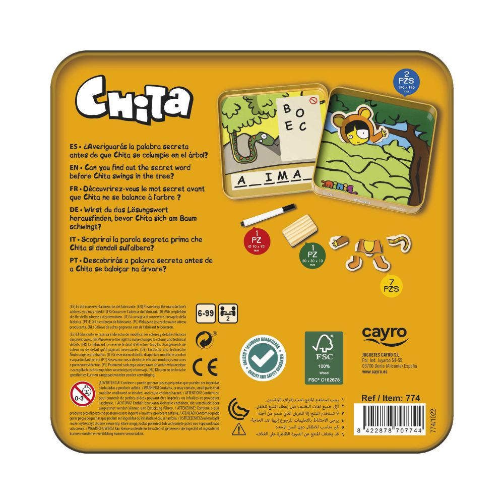 Merülj el a szórejtvények izgalmas világában a Mágneses Utazó akasztófa társasjátékkal! A célod, hogy kitaláld a titkos szót, mielőtt a „Chita” figura lehullik a fájáról. Az izgalmas és gondolkodtató játék során a játékosok felváltva kérdeznek rá betűkre. Ha a választott betű szerepel a szóban, a megfelelő helyre kerül a táblán; ha nem, Chita figurája egy újabb elemmel gazdagodik. Ha Chita teljesen elkészül, veszítők mentek. A játéknak angol nyelvi elemei vannak, de nyelvfüggetlen, mivel nem szükséges szöveget értelmezni. Paraméterek: