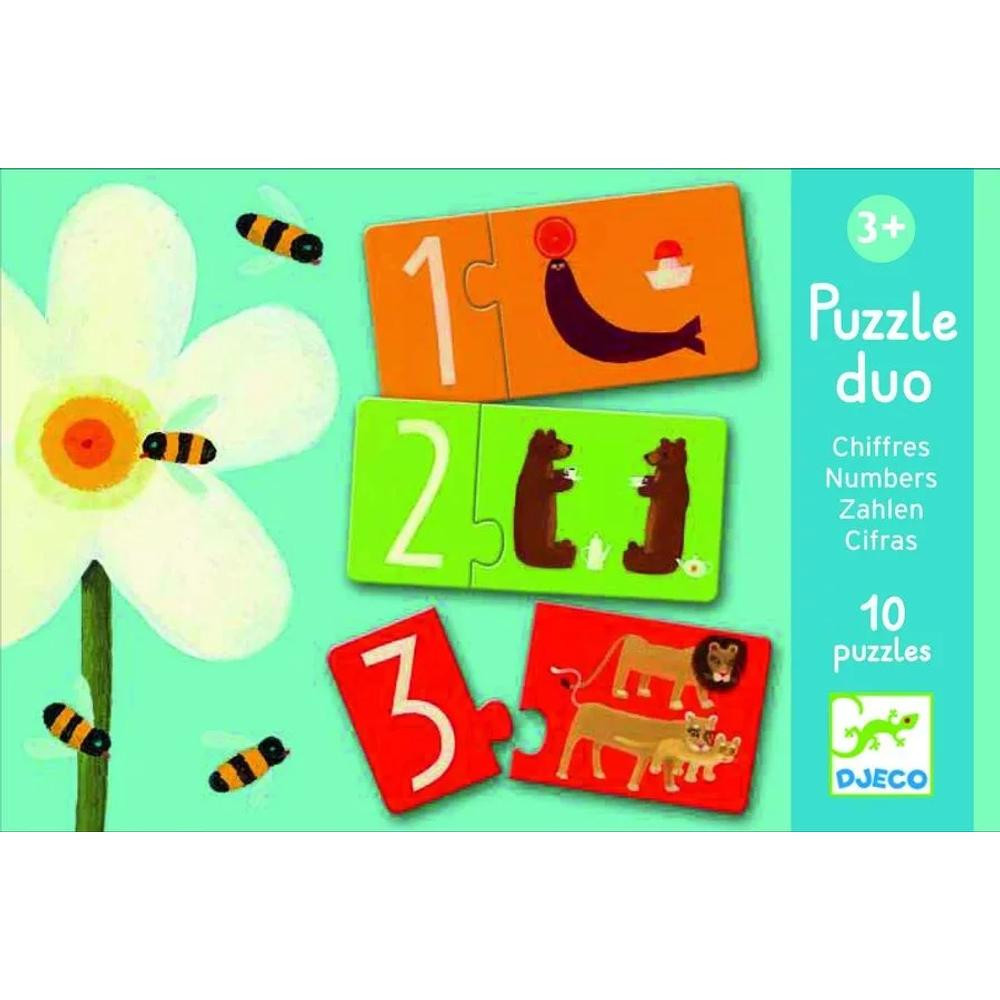 A Djeco Numbers aranyos állatfigurákkal vezet be a számok világába, különösen a legkisebbek számára, 2-3 éves kortól. A puzzle-ben található számokhoz tartozó állatpárosításokkal egyszerűen lehet megtanulni a számolást és bővíteni az állatokkal kapcsolatos ismereteket játék közben. Ismerkedés a számok világával szórakoztató módon, 3+ éves gyerekeknek ajánlott, rövid, 5-10 perces játékkal. Egyedül vagy több játékossal is élvezhető.