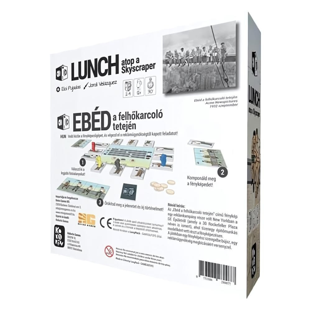 Az „Ebéd a felhőkarcoló tetején – LUNCH atop a Skyscraper” társasjátékban egy fényképészt irányítasz, és egy ikonikus jelenet újraalkotásában versenyezhetsz. A cél, hogy az „Ebéd a felhőkarcoló tetején” hangulatát felidézve minél több pontot gyűjts, és a lehető legjobban sikerült felvételt készítsd el. Ehhez építőmunkás-lapkákat kell gyűjtened, majd a megfelelő sorrendben elrendezned, hogy összeálljon a képed. A pontokat a 8 ismertetőjegy leghosszabb, megszakítás nélküli sorozataiért kapod.
