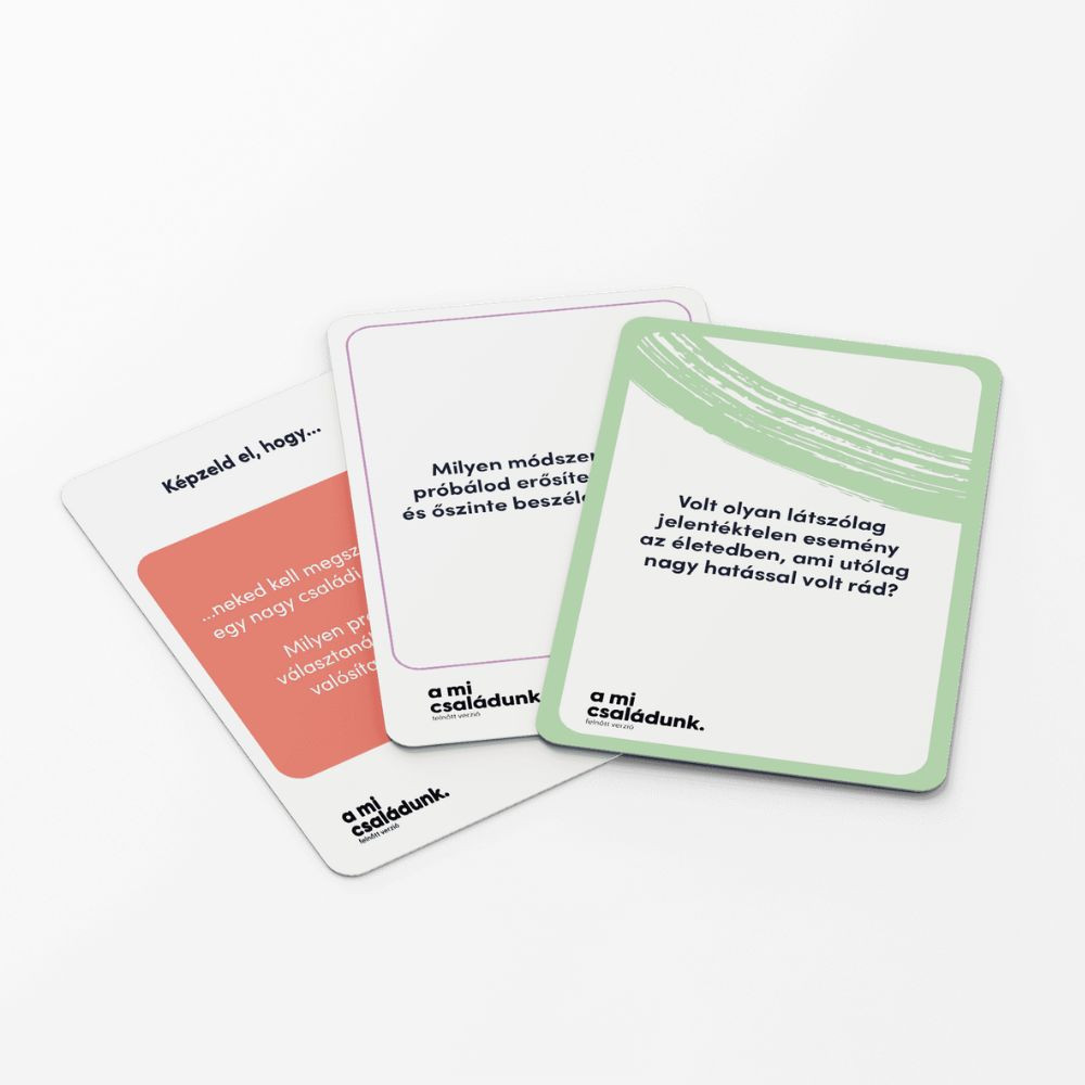 Ismered igazán a családod? Az Eufória – a mi családunk (felnőtt verzió) játékban garantáltan kiderül! Kérdések, beszélgetésindítók és vicces kihívások segítenek, hogy jobban megismerjétek egymást, miközben rengeteget nevettek. Ideális választás családi összejövetelekhez vagy közös estékhez, amikor egy kis nosztalgiára és őszinte pillanatokra vágytok.