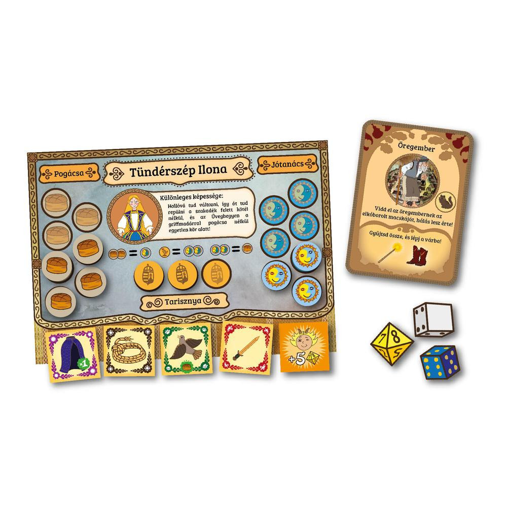 Most Te lehetsz a főszereplő! Vedd nyakadba a világot, szeld át az Óperenciás tengert, mássz meg Üveghegyet, és gyűjts össze varázstárgyakat! Szállj szembe a vasorrú bábával és mentsd meg a királylányt a hétfejű sárkánytól! A Magyar népmesék – A társasjátékban 2-6 játékos különböző mesehős szerepét ölti magára, hogy átéljen rengeteg kalandot, miközben próbálja teljesíteni az adott mesebeli feladatot. A cél: elsőként bejutni a várba, miután találkoztál a mesekártyán szereplő ellenséggel vagy segítővel, és megszerezted a szükséges varázstárgyakat. A játék menete: A játékosok felváltva dobnak kockával, és az eredmény szerint lépnek. Kaland- vagy eseménymezőre lépéskor azonnal végre kell hajtani az eseményt. Különösen fontos, hogy a játékosok nemcsak előre, hanem hátra is léphetnek, irányt változtatva a dobások után. Találkozásokkor cserélhetnek varázstárgyakat, tárgyakat, tanácsokat, vagy próbára tehetik bátorságukat. A játék az eredeti rajzfilm-sorozat alapján készült, 5 éves kortól ajánlott, és 20-40 perces kikapcsolódást nyújt 2-6 fő számára. Rendeld meg most, és légy minden idők legnagyobb hőse!
