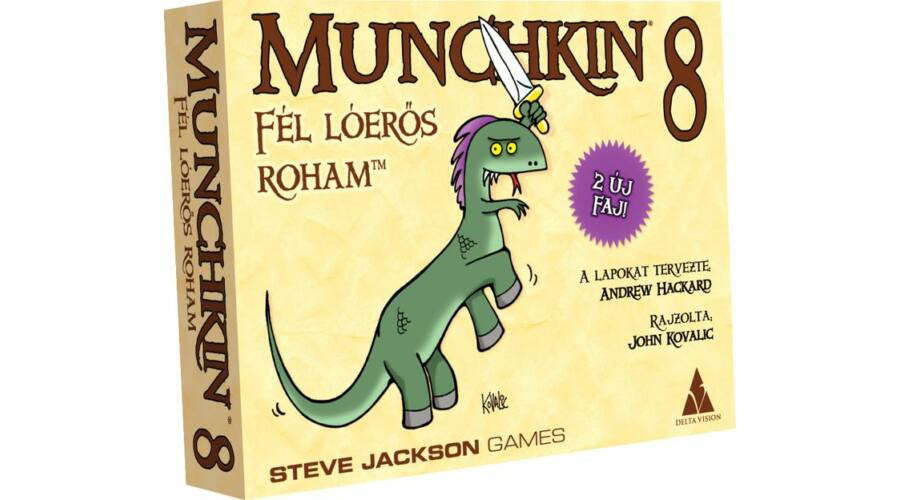 A Munchkin 8 - Fél lóerős roham kiegészítőt ajánljuk mindazoknak, akik szeretik a fantasztikus világokat és az izgalmas kalandokat. A játékban két új faj, a Kentaur és a Gyíkfickó, csatlakozik az eddigi fantáziafajokhoz, és számos új kártya segítségével bővül a játszható terep. A játékot 3-6 játékos játszhatják, és az ajánlott korosztály 10 éves kortól kezdődik. A játékidő általában 60-90 perc, így tökéletes választás lehet egy baráti összejövetelen vagy családi délutánon.