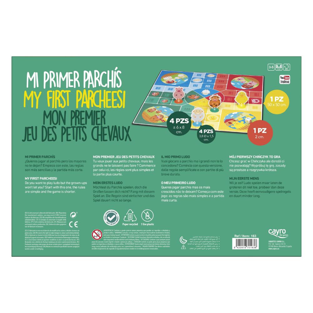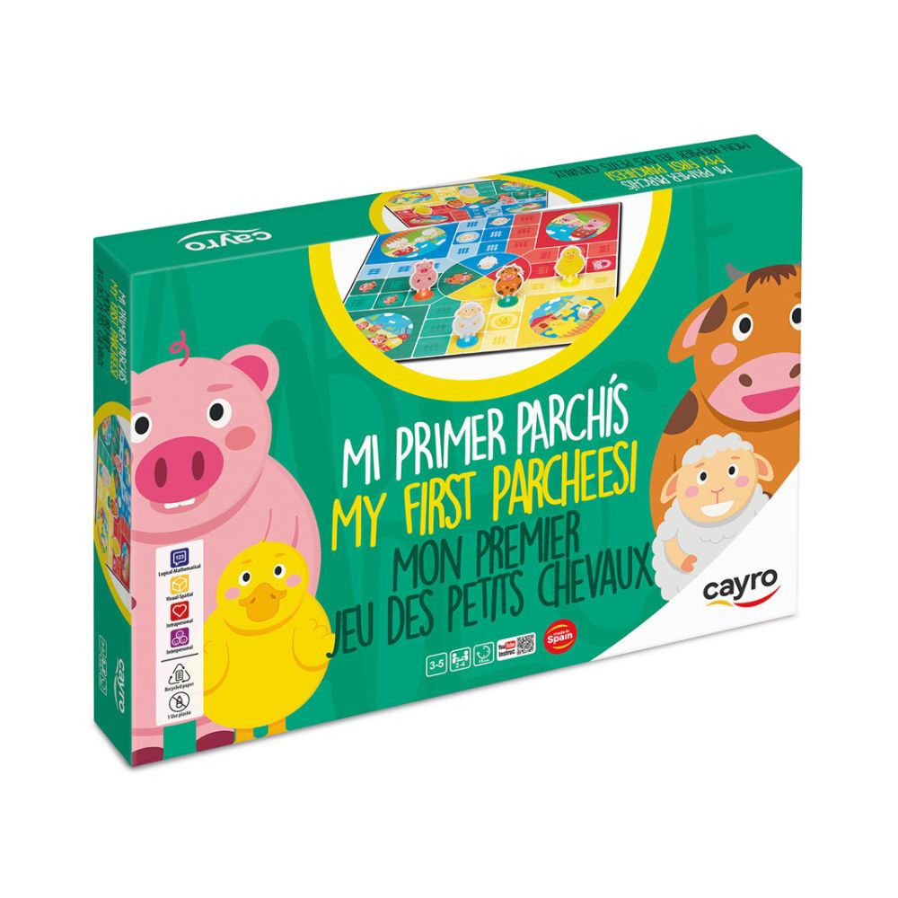 Lépj be a klasszikus társasjátékok világába a legkisebbeknek tervezett változattal! A My First Parcheesi játék a klasszikus Ki nevet a végén? egyszerűsített változata. Könnyített szabályrendszerével, színes dobókockájával és egyszerű mozgásaival segíti a gyerekeket a társasjáték alapjainak elsajátításában. A játék barátságos és interaktív hangulata gyorsan magába szippantja a kis játékosokat, miközben tanulják a szabályokat. A játékmenet könnyen követhető: annyit lépsz a mezőkön, amennyit dobsz, így a 3–5 évesek számára is érthető. A cél, hogy először juttasd el az összes figurádat a célmezőbe. A játék során a gyerekek nemcsak jól érzik magukat, de gyakorolják a várakozást és a sorban mozgást is.