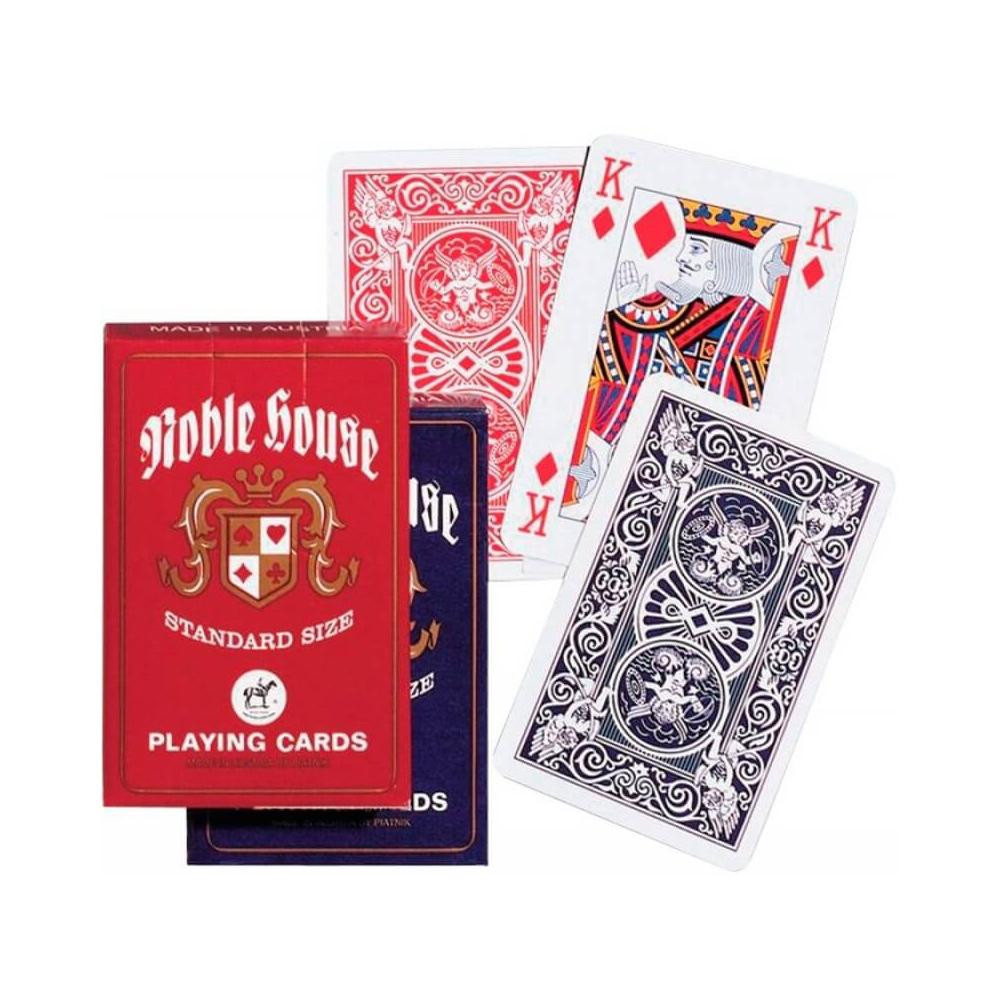 Éld át a nemesi házak eleganciáját minden játék alkalmával a Noble House francia kártyáival. E klasszikus mintázatú, papír alapú pakli 55 kártyalapot tartalmaz, melyek nedves textíliával könnyedén tisztíthatók. Rendeld meg most, és emeld új szintre a partik hangulatát!