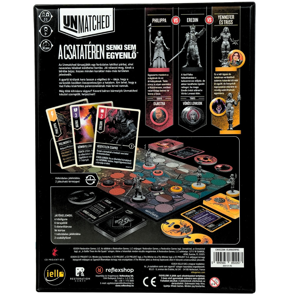 A The Witcher világának hősei és szörnyei most csatlakoznak az Unmatched univerzumhoz! Yennefer és Triss egy Unmatched-újdonságot is hoznak: te döntöd el, ki lesz a hős, és ki a segítőtárs - képességeik attól függnek, melyik szerepben harcolnak. Philippa sosem fogy ki a kártyákból, és Eredin a Vörös Lovasok parancsnoka, akik erősebbé teszik őt. Az akciódús, taktikai játék során minden játékos egy ismert harcos bőrébe bújhat. A körök egyszerűek, de a győzelemhez stratégiai gondolkodás szükséges. Az Unmatched sorozat önállóan is játszható, de a különböző fejezetek kombinációja hozza el az igazi élményt.