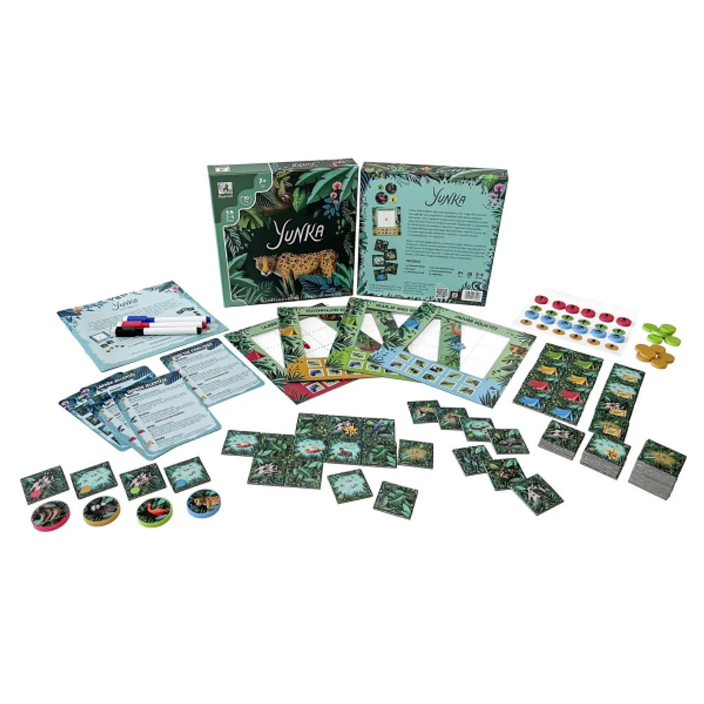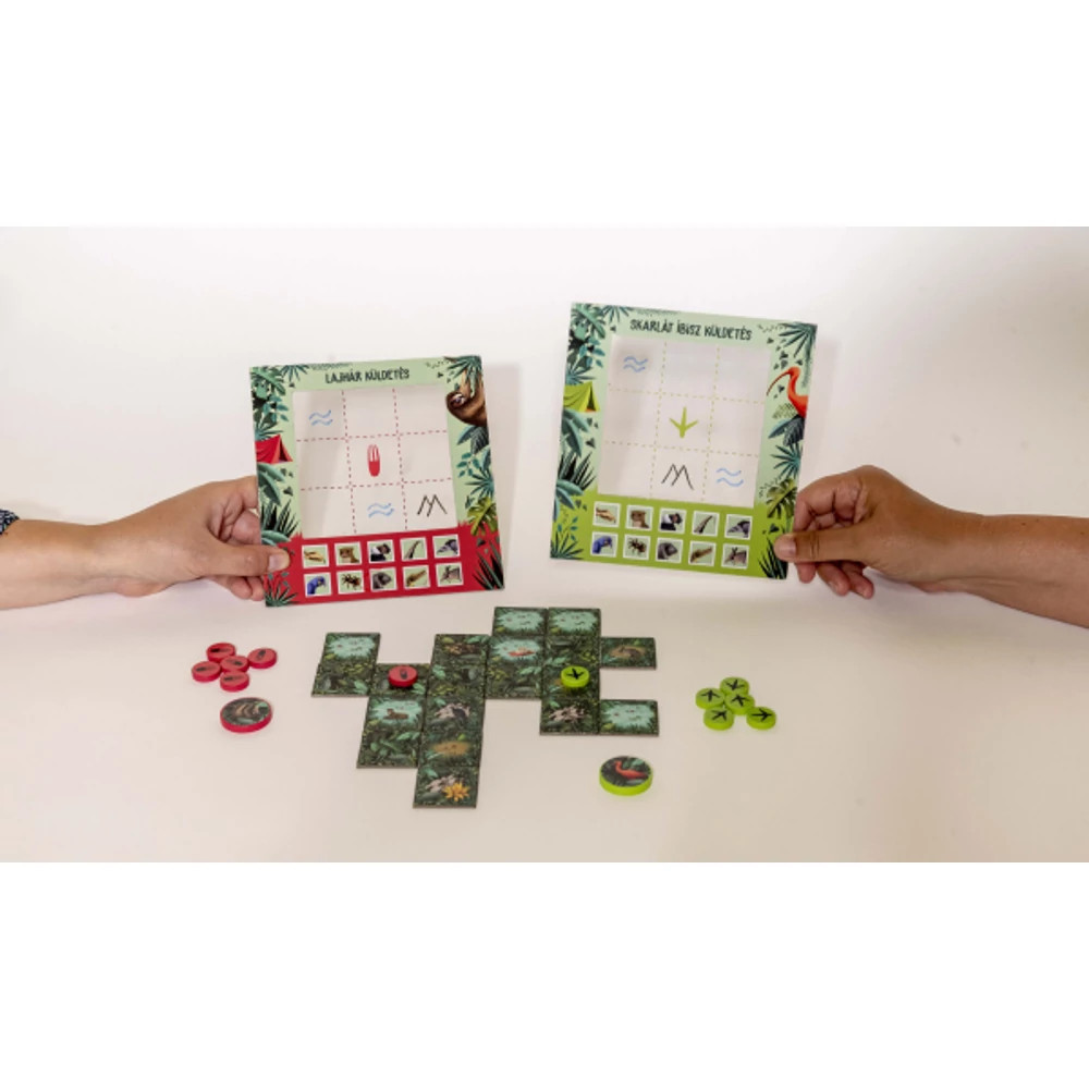 Megrögzött állatvédőként izgatottsággal fogadjátok a hírt: a dél-amerikai dzsungel egy félreeső részében eddig kihaltnak hitt állatok nyomaira bukkantak. Vajon valóban visszatértek ezek a fajok? Ideje elindulnotok, hogy saját szemmel lássátok! Csomagoljatok be gyorsan, térképpel a táskátokban vegyétek az irányt az esőerdő mélyére. Fel kell derítenetek, igazak-e a hírek, vagy csak átejtettek benneteket. Ki találja meg leghamarabb a lajhárokat, skarlát íbiszeket, selyemmajmokat és jaguárokat? Ebben az egyedülálló játékban mindenki kap egy saját, átlátszó, letörölhető térképet, amelyeken mindig más elrendezésben rajzolhatjátok fel a tereptárgyakat. Ezeket tartsátok a mindig változó dzsungel fölé, hogy kiderüljön, hol rejtőznek az állatok. A győzelemhez elengedhetetlen egy kis szerencse, valamint remek stratégiai és tájékozódó képesség!