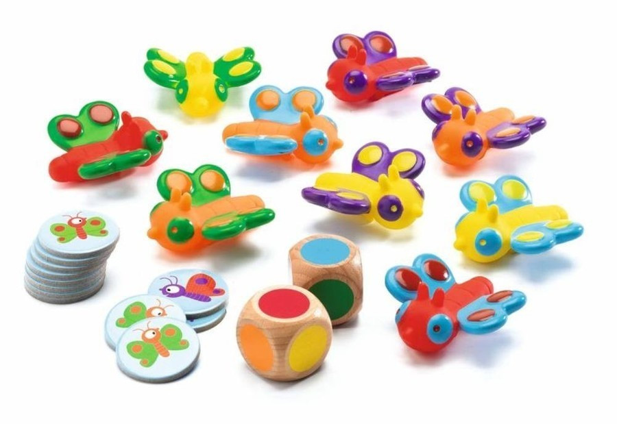 Tarka-barka pillangók szálldosnak boldogan a réten - légy a leggyorsabb és kapd el azt, amelyiket éppen kell. Ez a gyorsaságot, megfigyelést és reflexeket fejlesztő, interaktív társasjáték a minőségéről híres Djeco jóvoltából készült.