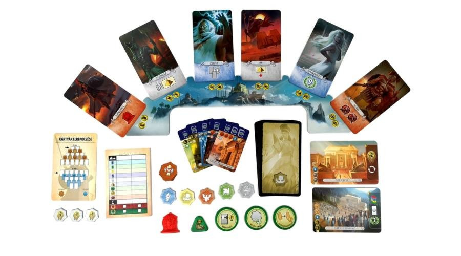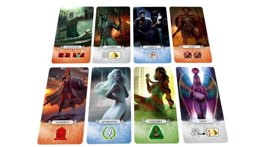 Fedezd fel a 7 csoda: Párbaj - Panteon kiegészítő világát, ahol különleges panteont hozhatsz létre isteneidnek. Gyűjtsd össze a mitológiai tokeneket az első korszakban, és válassz isteneket, akik majd segítenek a játék során. Használd fel az áldozati tokeneket az istenek támogatásának megszerzésére a második korszakban, és hozz döntéseket az istenek aktiválásáról a második és harmadik korszakban. Az istenek ereje sokféle lehet, segíthetnek téged vagy akadályozhatják ellenfeledet. Az új kiegészítő két új Csodát is tartalmaz: a Szentélyt és az Isteni Színházat. A doboz tartalma: