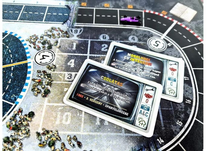 Az Heat: Hajtűkanyar kiegészítő új színt és kihívásokat hoz a népszerű Heat társasjátékhoz. Fedezd fel a spanyol Grand Prix izgalmas pályáját sötét alagutakkal és éles kanyarokkal, valamint a Hollandia szélsebes útvonalait, ahol a gyorsaság és a technikai ügyesség a győzelem kulcsa. Az új Front Wing fejlesztéssel előnyt szerezhetsz ellenfeleiddel szemben, és a friss eseménykártyák még nagyobb izgalmakat hoznak a versenyekbe. A kiegészítővel bővül a játékosok száma is, így akár hét vagy akár nyolc játékos is részt vehet az izgalmas futamokon. Ne hagyd ki ezt az izgalmas újítást, melyhez a Heat – Padlógáz társasjátékra van szükség!