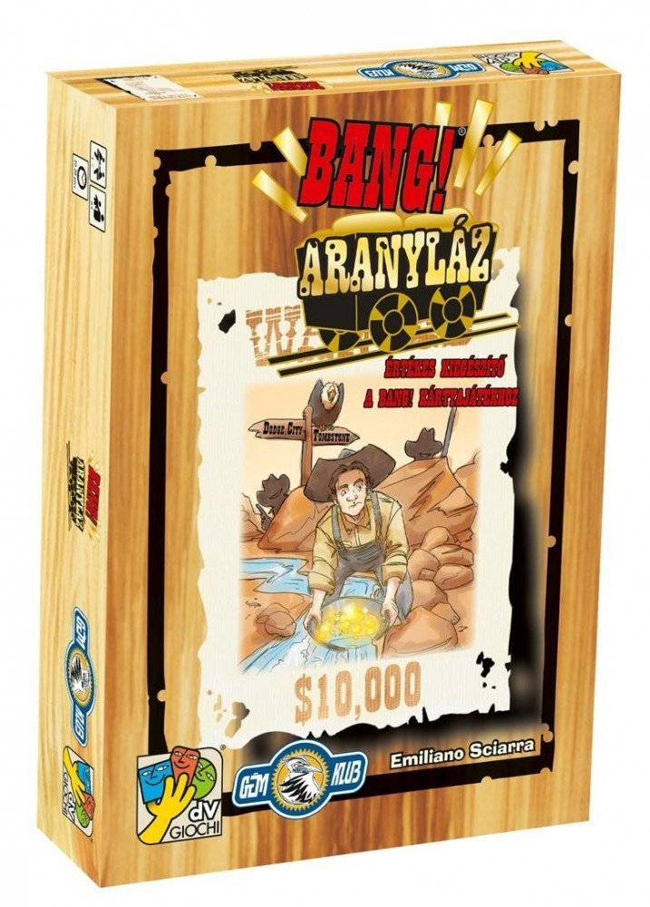 Az Aranyláz kiegészítő a Bang! társasjátékhoz hozzáad egy vadnyugati életérzést, ahol a szerencsevadászok az arany után kutatnak és egymással versengenek. A játékba maximum 8 játékos csatlakozhat, és az ajánlott életkor 8 évestől kezdődik. A játékidő pedig általában 20-40 perc, ami tökéletes időtartam egy kellemes játékhoz barátok vagy családtagok társaságában.
