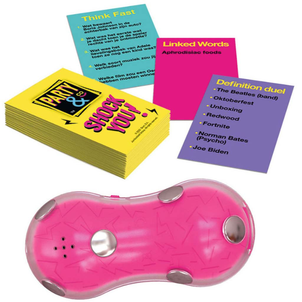 A Party & Co. Shock You egy pörgős, szórakoztató társasjáték, amely garantáltan feldobja a hangulatot bármelyik bulin. Akár ki kell találni egy szót, akár izgalmas feladatokat kell végrehajtani, itt nem fogsz unatkozni. A feszültség fokozódik, ahogy a játék egyre inkább próbára teszi minden játékos ügyességét és gyorsaságát. Minden pillanatban más és más vár rád: izgalmas feladatok, gyors reakciók és sok-sok nevetés. A játék célja, hogy minél több kártyát gyűjts, miközben próbálod elkerülni a "shock" kártyákat. A játékmenet során mindenki a saját feladatát próbálja végrehajtani, miközben figyelnie kell a többiek reakcióira is. A játékosoknak folyamatosan alkalmazkodniuk kell a változó helyzetekhez és minél gyorsabban kell teljesíteniük a feladatokat. A gyors gondolkodás és a jó csapatmunka kulcsfontosságú, hogy megnyerd a játékot!