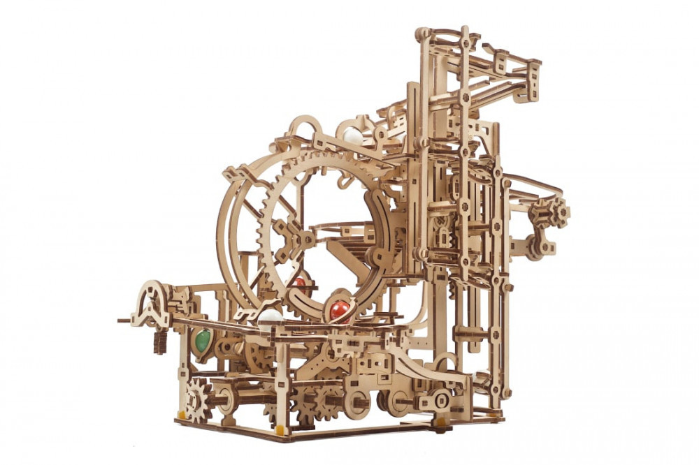 Bemutatjuk a Marble Run lépcsős emelőt, az Ugears moduláris márványpályák sorozatának második darabját. Ez a szórakoztató és lenyűgöző fából készült golyófutó egy ötletes, 3 lépcsős, váltakozó emelőmechanizmussal és egy sor új funkcióval rendelkezik, amelyek lekötik a figyelmet, miközben a golyók ciklikus útját figyeli. Ebben a barkács golyós futópályában több pálya és elem van kompakt helyre összezsúfolva.